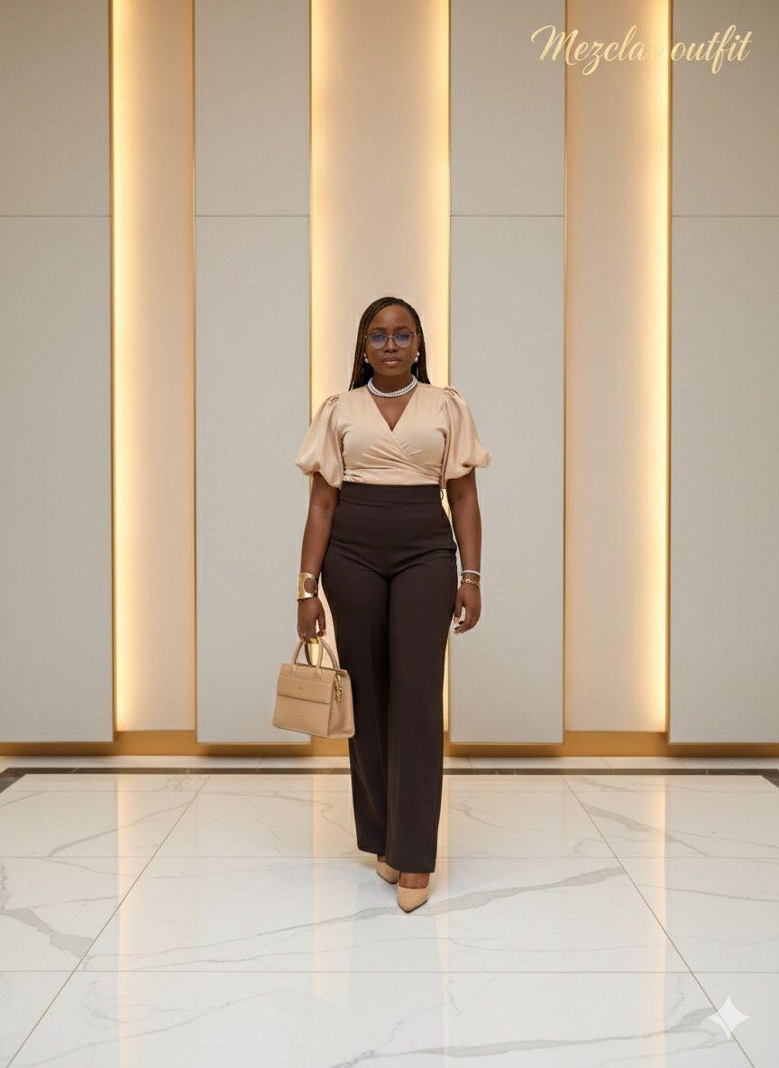 Chic Cream & Brown Two-Piece Set